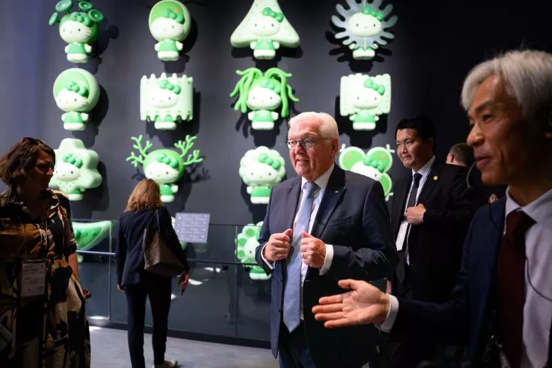 „In den Themenpavillons geht es um konkrete Lösungen – von grüner Architektur bis zu intelligenter Energieverteilung“, sagte Steinmeier. Aber es geht auch um einen Perspektivwechsel: darum, voneinander zu lernen, über Grenzen hinweg, über Generationen hinweg. Deutschland bringe sich in diese globale Ideenwerkstatt mit dem Thema Kreislaufwirtschaft ein. „Denn wir sind davon überzeugt: Je klüger wir Ressourcen nutzen, desto besser für unseren Planeten – und für uns alle, vor allem für künftige Generationen, für unsere Kinder, für unsere Enkel.“