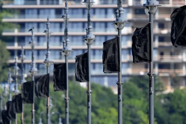 Auf der Margaretenbrücke wehen seit Samstag schwarze Trauerfahnen.