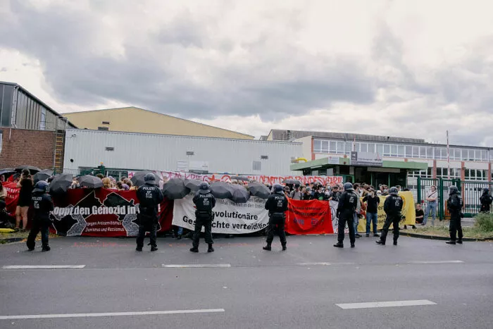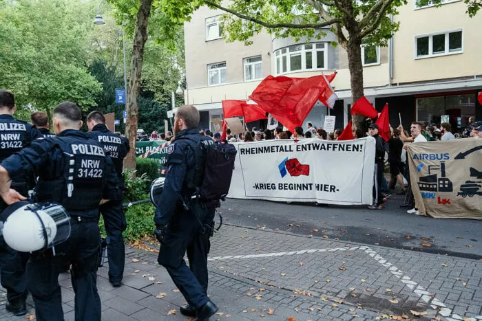 Am 29. August 2025 kommt es in Köln zu einer Konfrontation zwischen Bereitschaftspolizei und Demonstranten während einer Blockadeaktion. Laut Angaben der Pressestelle von Rheinmetall hat die Polizei fünf Blockaden gegen Partnerunternehmen aufgelöst und rund 500 Aktivisten wegen Hausfriedensbruchs und Verkleidung angeklagt, bevor sie sie zurück in ihr Lager geschickt hat.