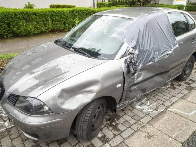 Kollateralschaden: Ein beschädigtes geparktes Fahrzeug nach dem mutmaßlichen Autorennen in Moers.
