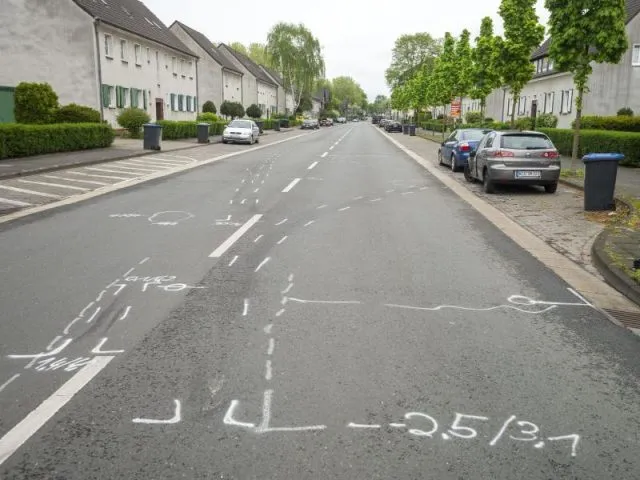 Weiße Markierungen zeigen den Unfallhergang nach dem mutmaßlichen Autorennen, bei dem eine Unbeteiligte starb.