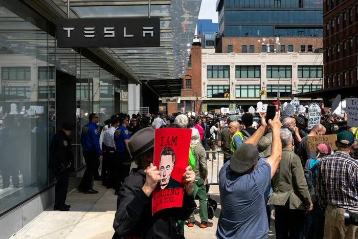 Im Rahmen des sogenannten „Tesla Takedown“-Protesttages ereigneten sich weltweit zahlreiche Proteste gegen Elon Musk. In den Handlungen des Techmilliardärs sehen die Demonstranten eine Gefahr für die Demokratie.