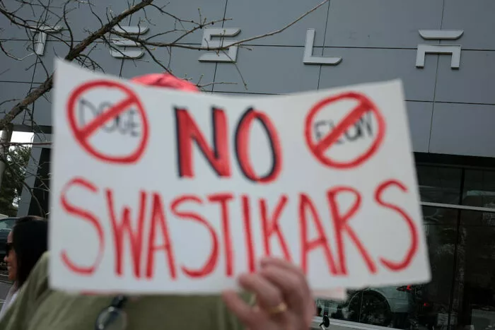 In der kanadischen Stadt Vancouver protestierten rund hundert Menschen vor einem Tesla-Händler. Ein Demonstrant in einem Dinosaurier-Kostüm hielt ein Plakat mit der Aufschrift: „Ihr dachtet, die Nazis seien ausgestorben? Kauft kein Swastikar.“ Swastikar ist ein Wortspiel aus den englischen Wörtern für Hakenkreuz (Swastika) und Auto (car).