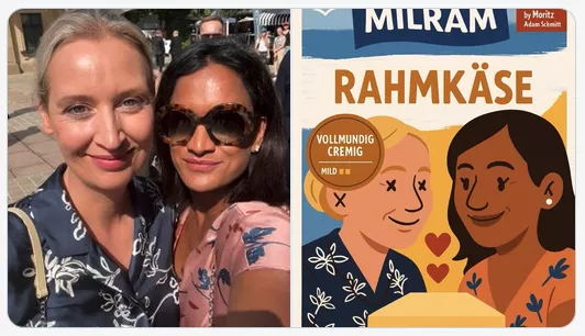 Allerdings entfacht die Kampagne auch die Kreativität einiger Nutzer, die eigene Milram-Käseverpackungen erfinden. So kursiert etwa eine Version von Alice Weidel mit ihrer langjährigen Partnerin Sarah Bossard.