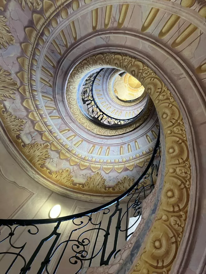 Treppenabgang von der Bibliothek zur Kirche St. Peter und Paul im Stift Melk.