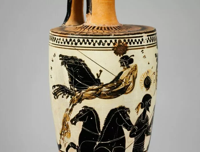 Griechische Urne mit dem Bild der Göttin Nyx, Göttin der Nacht und Tochter des Chaos.