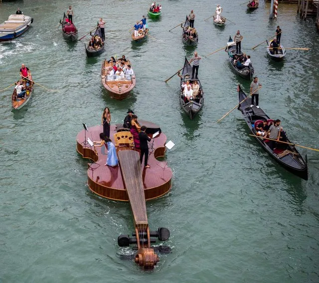 In Venedig, eines der großen kulturellen Zentren der Welt, konzipierte der Künstler Livio De Marchi im November 2020 ein schwimmendes Kunstwerk. Diese überdimensionale Geige widmete er der Musik und den Musikern.