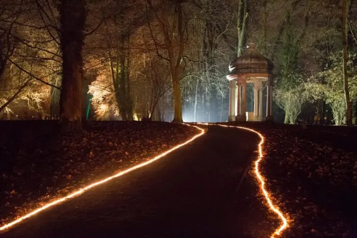 Später schlendern wir durch die Schlossgärten, die in der kühlen deutschen Nacht sanft beleuchtet sind. Für mich bestehen die Feiertage aus solchen kostbaren Erinnerungen: die Zeit mit Familie und Freunden zu genießen und die kleinen Freuden des Lebens auszukosten.