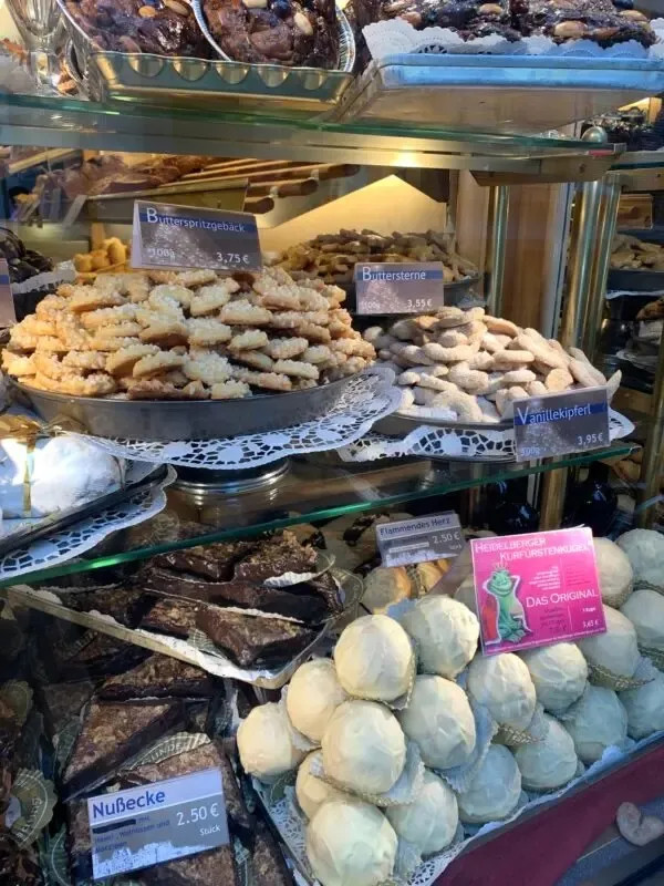 Heidelbergs wunderschöner Weihnachtsmarkt erstreckt sich über die gesamte Altstadt, von der Fußgängerzone bis zum Bismarckplatz, Anatomiegarten, Universitätsplatz, Marktplatz und dem prächtigen Kornmarkt. Es bleibt kaum Zeit zum Verweilen, doch ein süßes Schneeballgebäck zum Mitnehmen kaufe ich mir.
