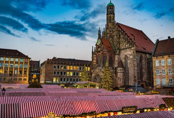 Nürnberg, unser nächster Halt, beherbergt einen der größten Weihnachtsmärkte Deutschlands. Er befindet sich auf dem Hauptmarkt in der historischen Altstadt, nennt sich Christkindlesmarkt und verströmt eine lebhafte, mittelalterliche Atmosphäre.