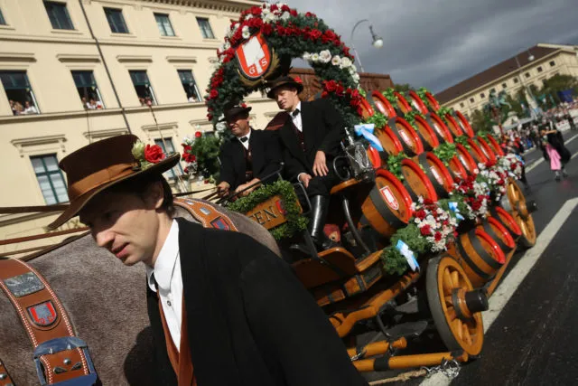 Teilenhmer des traditionellen Umzuges zum Oktoberfest 2018.