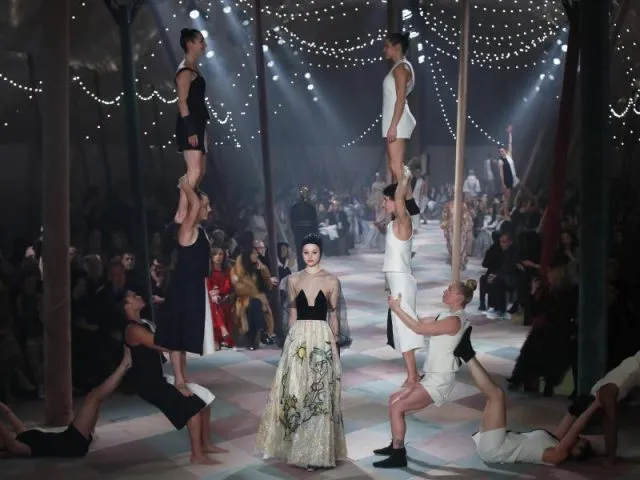 Im Garten des Rodin-Museums erwartete die Gäste ein gigantisches Zirkuszelt, in dessen Manege hochkarätige Gäste wie Kristin Scott Thomas oder Eva Herzigova saßen. Die Show eröffnete die poetische Akrobaten-Nummer einer weiblichen Zirkusgruppe.