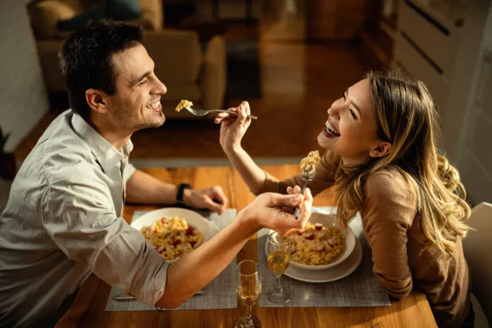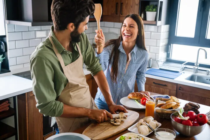 Darüber hinaus kann gemeinsames Kochen viel Spaß machen – besonders wenn Sie ein neues Rezept ausprobieren und dies gemeinsam entdecken. Missgeschicke in der Küche können eine Quelle für noch mehr Verbundenheit sein, wenn das Paar gemeinsam über Fehler lacht.