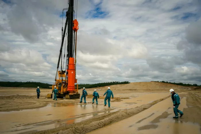 Am 18. August 2020 während der Arbeiten für den Bau einer gigantischen Erdölraffinerie in der Nähe von Svobodnoi – gebaut vom russischen Petrochemiekonzern SIBUR und China.