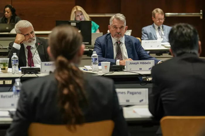 Robert Malone (l.) und Joseph Hibbeln nehmen am 25. Juni 2025 an der ersten Sitzung des Impfberatungsausschusses im globalen Hauptsitz der Gesundheitsbehörde CDC in Atlanta teil. Gesundheitsminister Robert F. Kennedy Jr. entließ am 9. Juni alle Mitglieder des Ausschusses und wählte neue Mitglieder aus.
