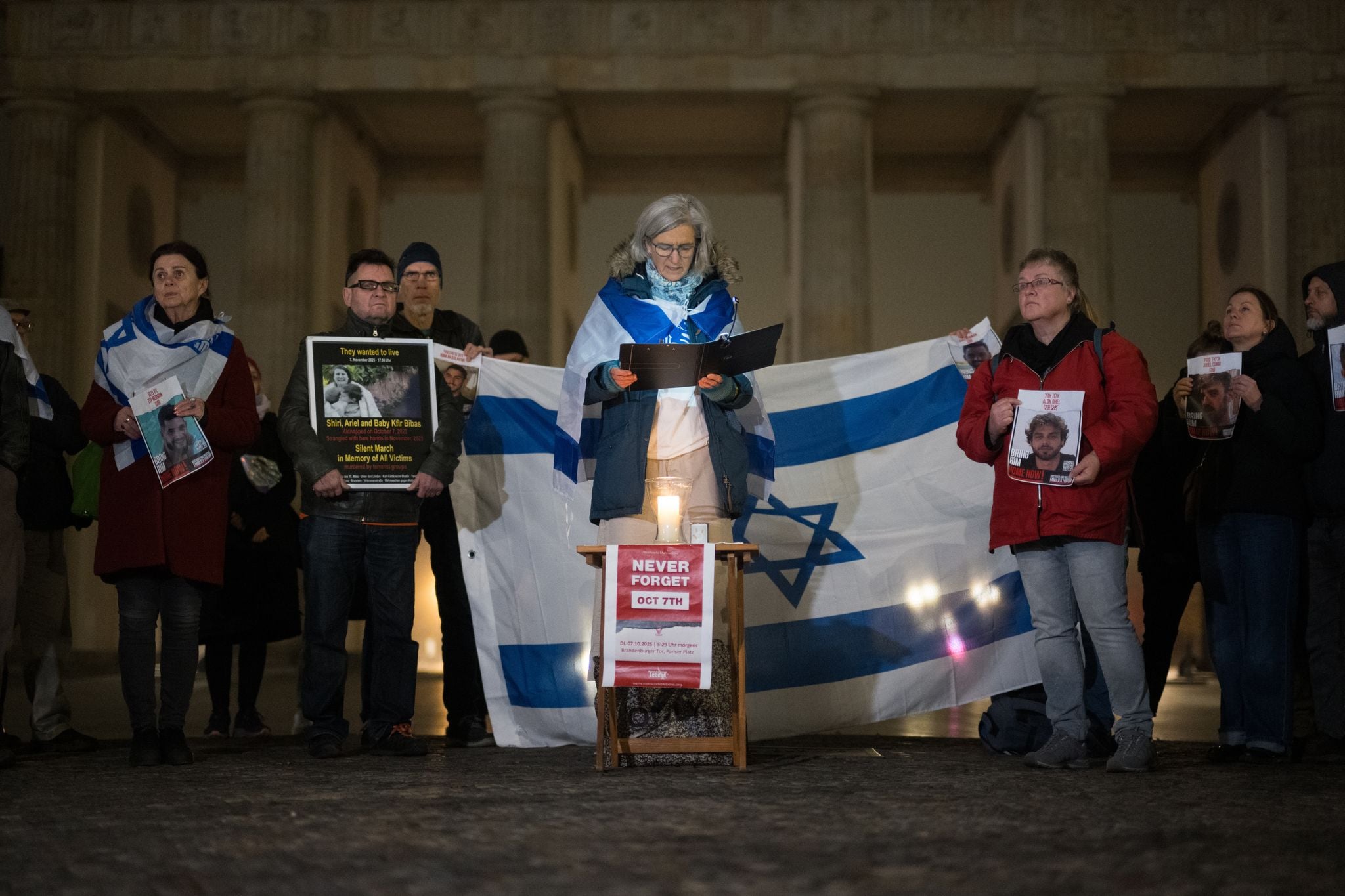Auch in Berlin erinnerten mehrere Gedenkveranstaltungen an die Opfer des Massakers. Am Brandenburger Tor wurden am frühen Morgen die Namen der rund 1.200 Todesopfer verlesen und rund 1.100 Stühle in Gedenken an die Opfer aufgestellt. Am Abend wurden die Worte „Bring them home now“ auf das Brandenburger Tor projiziert. Damit wird gefordert, die verbliebenen Geiseln freizulassen.