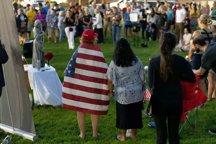 Menschen trauern um Charlie Kirk, den Gründer von Turning Point USA, während einer Gebetswache am 10. September 2025 in Scottsdale, Arizona.