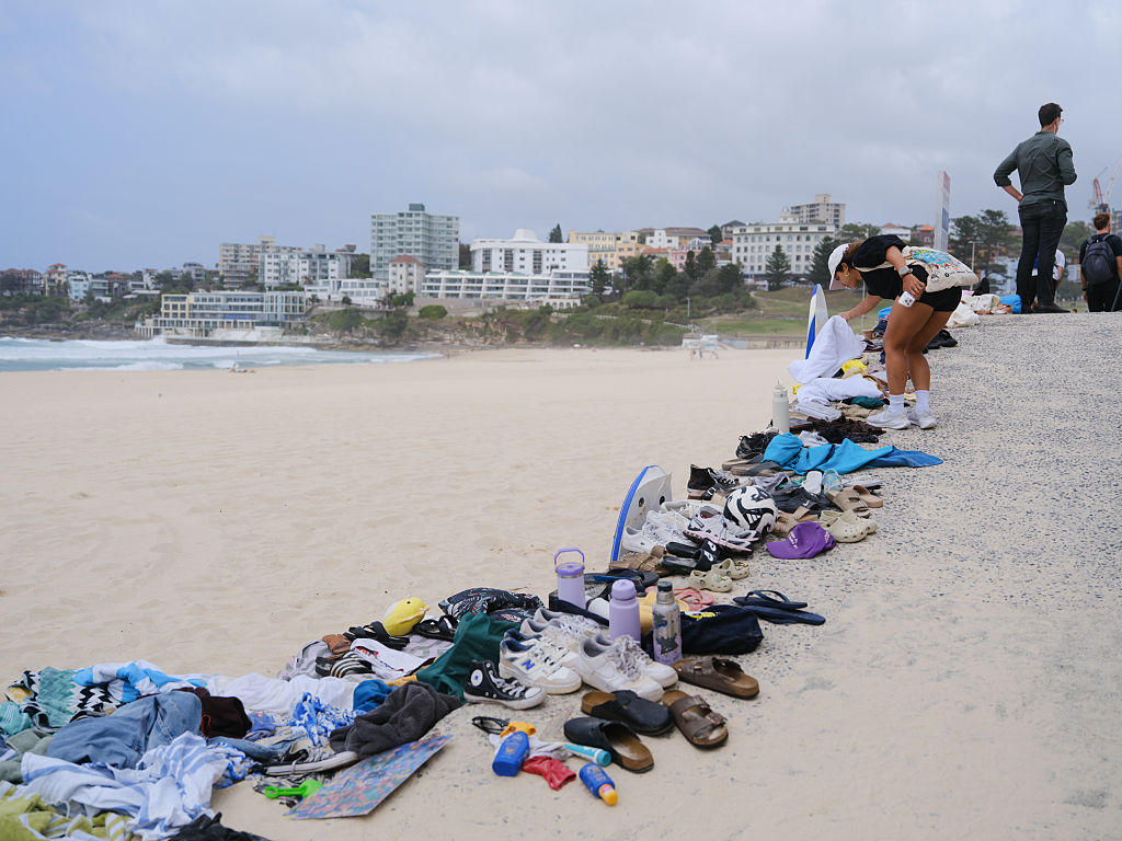 Persönliche Gegenstände, die am 15. Dezember 2025 am Bondi Beach in Sydney, Australien, am Tatort der Schießerei zurückgelassen wurden.