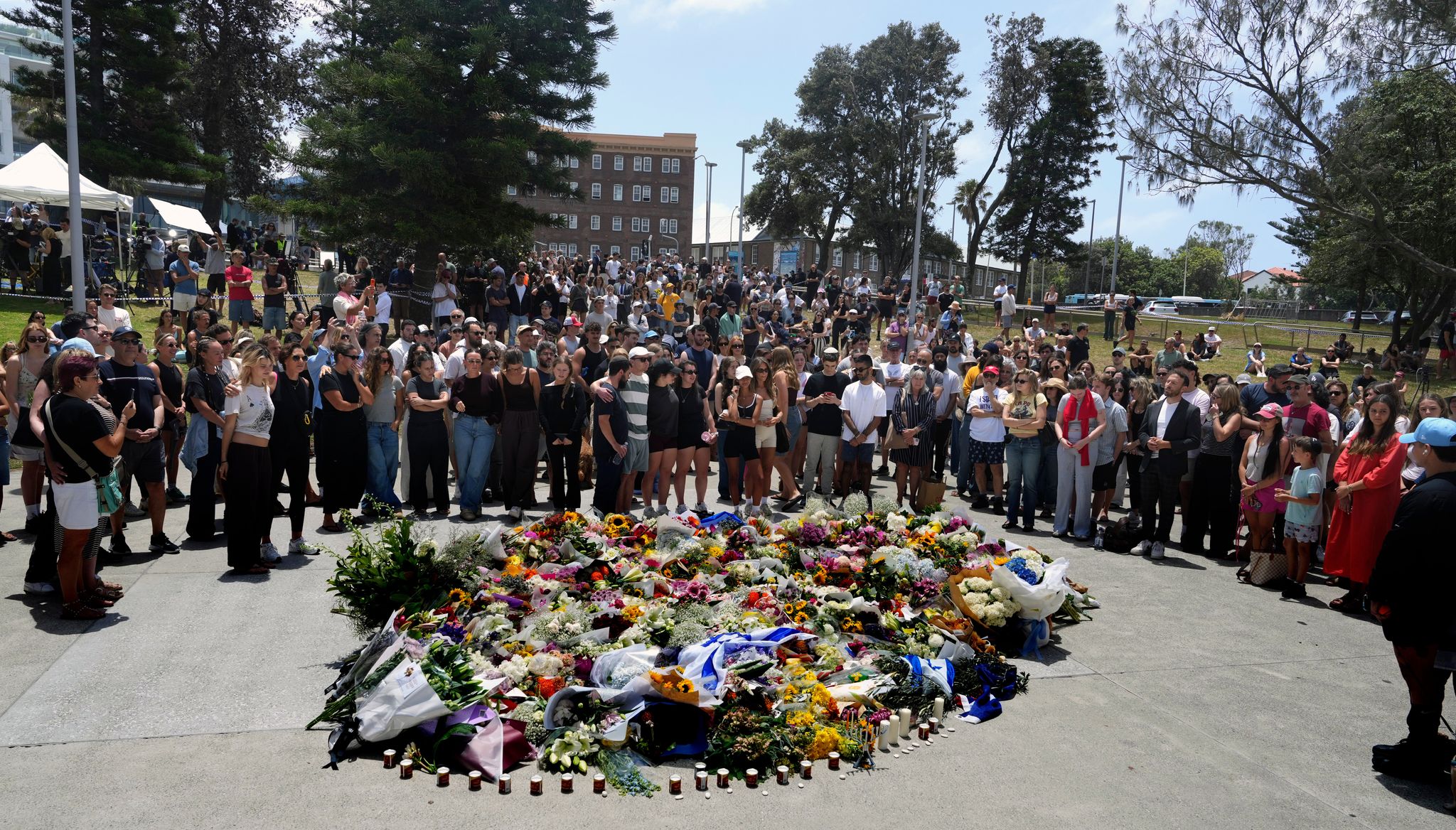 Menschen versammeln sich einen Tag nach einer Schießerei am Bondi Beach in Sydney.