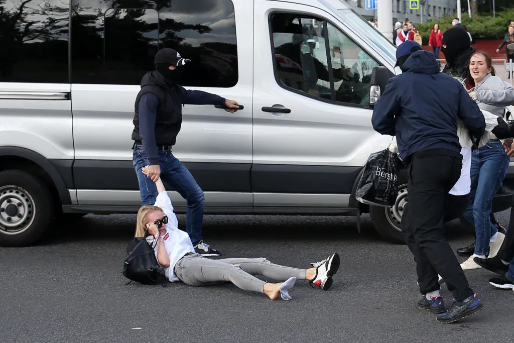 Polizeibeamte in Zivil nehmen Demonstranten während einer Kundgebung zum Protest gegen die Ergebnisse der Präsidentschaftswahlen in Minsk am 13. September 2020 fest.