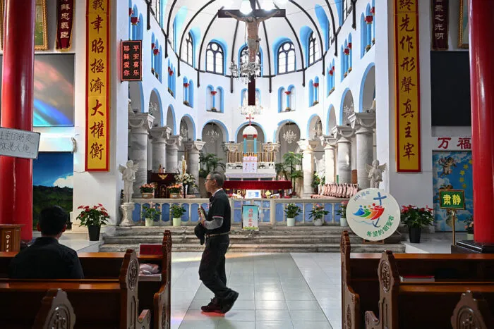 Am 22. April 2025 in der katholischen Kirche in Baoding in der nordchinesischen Provinz Hebei. China und der Vatikan unterzeichneten 2018 ein Abkommen, das sowohl Peking als auch dem Heiligen Stuhl ein Mitspracherecht bei der Ernennung von Bischöfen einräumt.