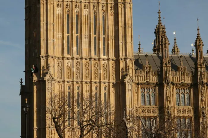 Die Polizei in London hat einen Demonstranten festgenommen, der mit einer Palästinaflagge auf den Uhrturm am britischen Parlament geklettert war.
