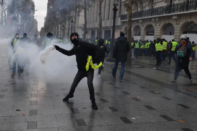 Rund 1500 Menschen hätten sich am Vormittag auf den Champs-Elysées versammelt, erklärte die Polizeipräfektur. Nach Angaben von Frankreichs Regierungschef Edouard Philippe wurden in Paris bis zum späten Vormittag 481 Menschen vorläufig festgenommen, 211 Menschen kamen in Polizeigewahrsam. Darunter seien Verdächtige, die Masken, Steinschleudern, Hämmer und Pflastersteine bei sich getragen hätten.