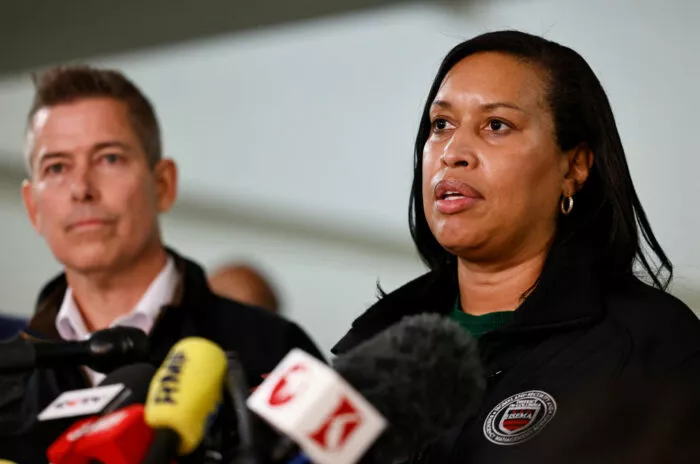 Die Bürgermeisterin von Washington, D.C., Muriel Bowser, spricht am 30. Januar 2025 bei einer Pressekonferenz am Reagan National Airport in Arlington, Virginia.