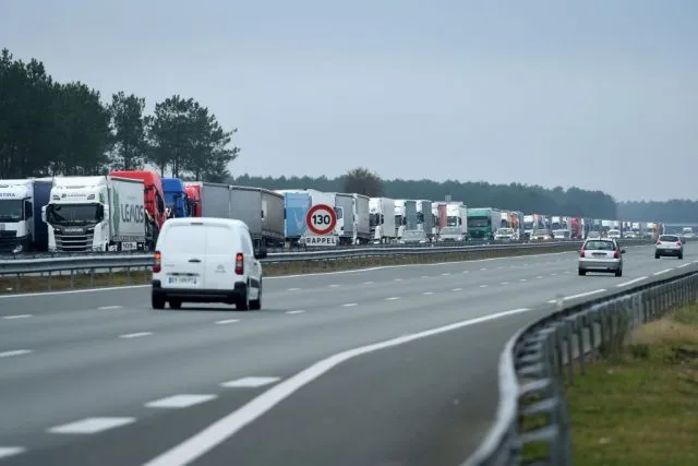 Trucks blockierten die A63 zwischen Castets und Lesperon am 7. Dezember 2019 im Südwesten Frankreiches.