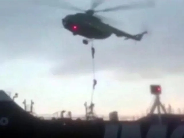 Zwei bewaffnete Soldaten der iranischen Revolutionsgarde entern den Öltanker «Stena Impero».