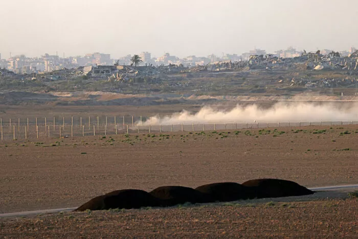 Ein Militärfahrzeug patrouilliert entlang der Sperranlage zum Gazastreifen.