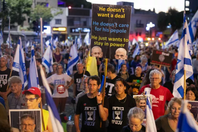 Demonstranten, die Druck für ein Abkommen zur Freilassung der Geiseln machen, werfen Netanjahu vor, dass dieser ein Gaza-Abkommen blockieren würde. Tausende Menschen demonstrierten auch am Samstag in Tel Aviv, Jerusalem, Haifa und anderen israelischen Städten.