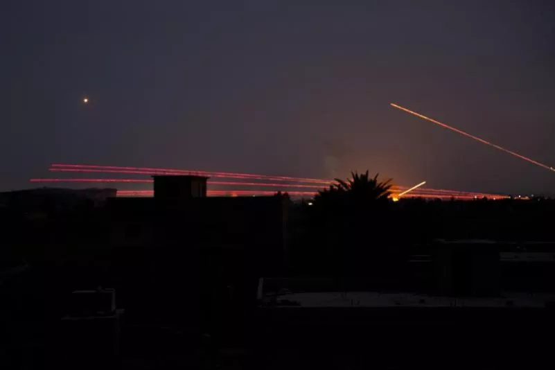 Leuchtspurmunition erhellt den Nachthimmel über Baghus, der letzten IS-Bastion in Syrien.