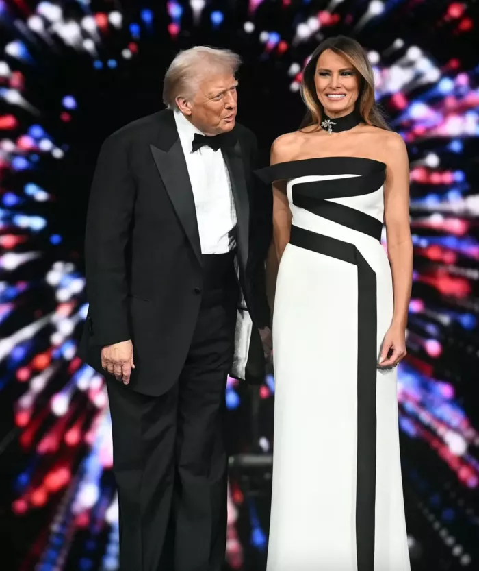 Auf dem Commander-in-Chief-Ball trug die First Lady ein schwarz-weißes trägerloses Kleid des Designers Hervé Pierre, das zum Smoking ihres Mannes passte und diesen auf klassische Weise in einer Umkehrung ergänzte. In einer Erklärung sagte Pierre: „Es ist eine große Ehre, mit der First Lady bei der Gestaltung ihres Antrittskleides zusammengearbeitet zu haben. Es war klar, dass Frau Trump sich zu einer Kombination aus Schwarz und Weiß hingezogen fühlte – ganz im Sinne ihres eigenen Stils und ihrer Vision.“