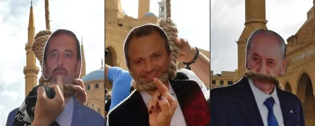 Vereinzelt schwenkten Protestierende auch Schlingen, auf dem Märtyrer-Platz im Zentrum von Beirut waren bereits am Freitag hölzerne Guillotinen errichtet worden. Protestaufrufe in Onlinenetzwerken wurden mit dem Hashtag #HangThem (#HängtSie) versehen. Sicherheitskräfte versuchten die Demonstranten auf dem Weg zum Parlamentsgebäude zurückzudrängen, die Polizei setzte Tränengas gegen Steinewerfer ein.