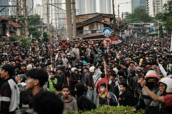 Proteste eskalierten am 28. August, nachdem der Fahrer eines Motorradtaxis in Jakarta bei Protesten von einem gepanzerten Polizeifahrzeug des Mobile Brigade Corps (Brimob) überrollt und getötet wurde – was landesweite Empörung auslöste.