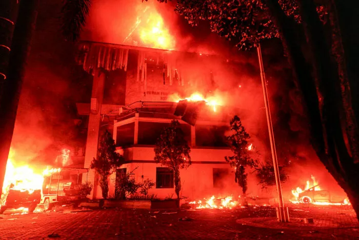 Das Rathaus der Stadt Makassar wurde in Brand gesteckt, auch das Gebäude des Provinzrats von West-Nusa Tenggara brannte.
