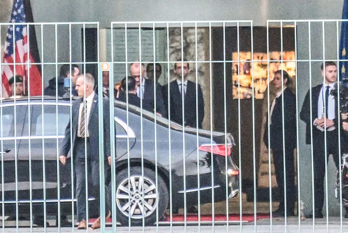 Die US-Delegation traf am Vormittag in einem Berliner Hotel ein. Später ging es dann zum Kanzleramt.