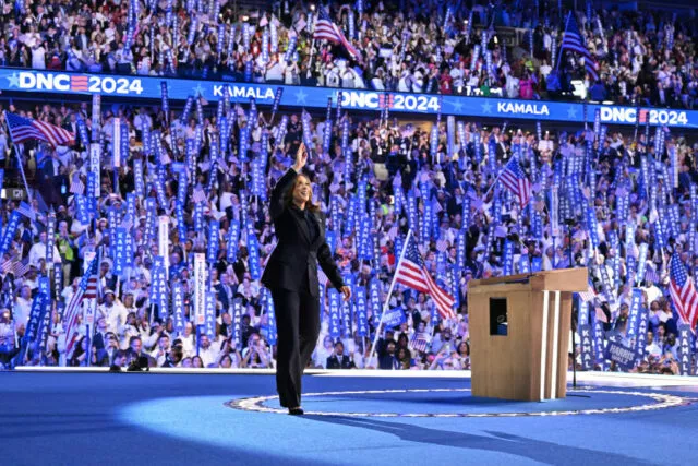 Kamala Harris betritt energisch die Bühne am vierten und letzten Tag des Demokratischen Nationalkonvents.