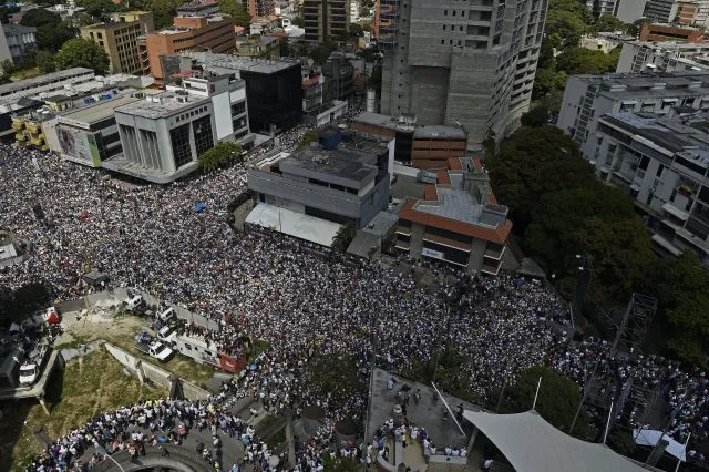 Tausende Menschen beteiligten sich am Samstagvormittag (Ortszeit) an den beiden Großdemonstrationen in der Hauptstadt Caracas, Venezuela. Anhänger des Übergangspräsidenten Juan Guaidó versammelten sich an fünf Punkten im Osten der Stadt und zogen zum Sitz der diplomatischen Vertretung der Europäischen Union.