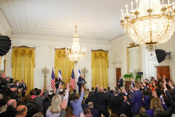 Auf die Frage eines weiteren Reporters ließ Trump die Tür zur jüdischen Souveränität über Samaria, den biblischen und israelischen Namen für den nördlichen Teil des Westjordanlands, offen.