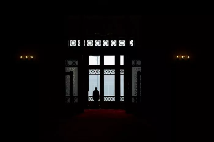 Ein Sicherheitsbeamter steht am 13. März 2018 am Eingang der Großen Halle des Volkes in Peking.