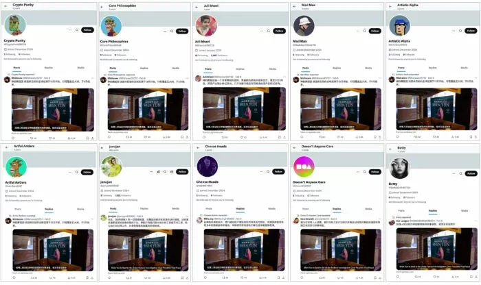 Die Epoch Times überprüfte manuell den Inhalt Hunderter Accounts mit geringer Followerzahl und fand deutliche Anzeichen für unauthentische Aktivitäten. In der Regel wurden diese Accounts um den April 2024 herum oder später erstellt und veröffentlichten oder reposteten nur Anti-Falun-Gong-Inhalte.