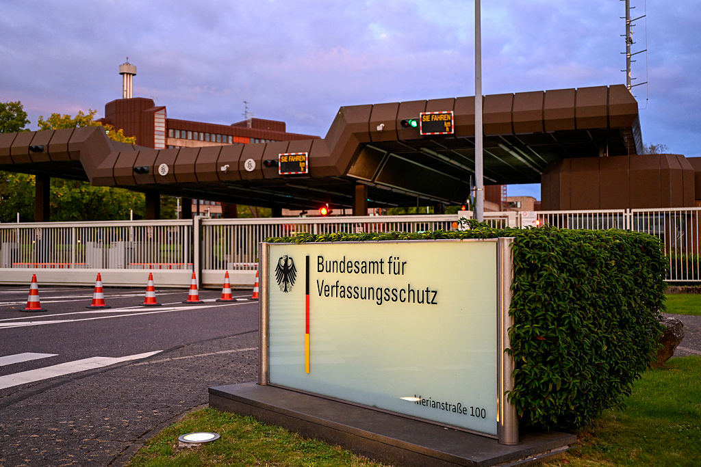Vor dem Eingang zum Bundesamt für Verfassungsschutz (BfV) in Köln, 22. September 2025.