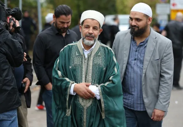 Mohamed Taha Sabri, Imam in der Dar Assalam-Moschee, geht zum Abschluss der Beerdigung von Nidal R. vom Friedhof.