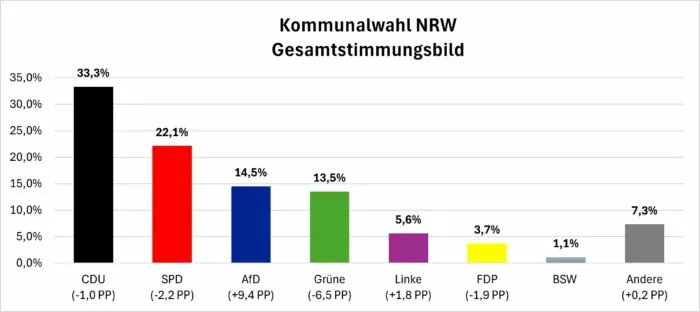 Die Kommunalwahl in NRW wird sowohl von den Parteien als auch von den Medien als Stimmungsbarometer für die Bundesregierung unter Kanzler Friedrich Merz (CDU) und Vizekanzler sowie Finanzminister Lars Klingbeil (SPD) gesehen. Denn es ist die erste Wahl seit Bildung der neuen Bundesregierung.