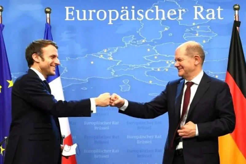 Bundeskanzler Olaf Scholz und Frankreichs Präsident Emmanuel Macron beim EU-Gipfel.