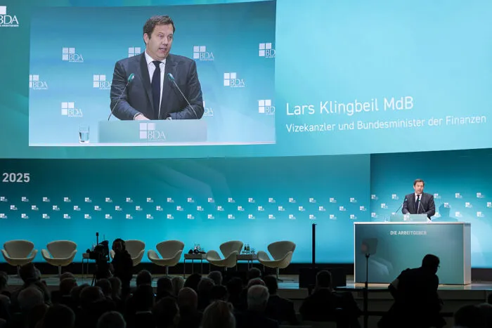 Lars Klingbeil (SPD) spricht auf dem Jahreskongress des Bundesverbandes der Deutschen Arbeitgeberverbände am 25. November 2025 in Berlin, Deutschland.