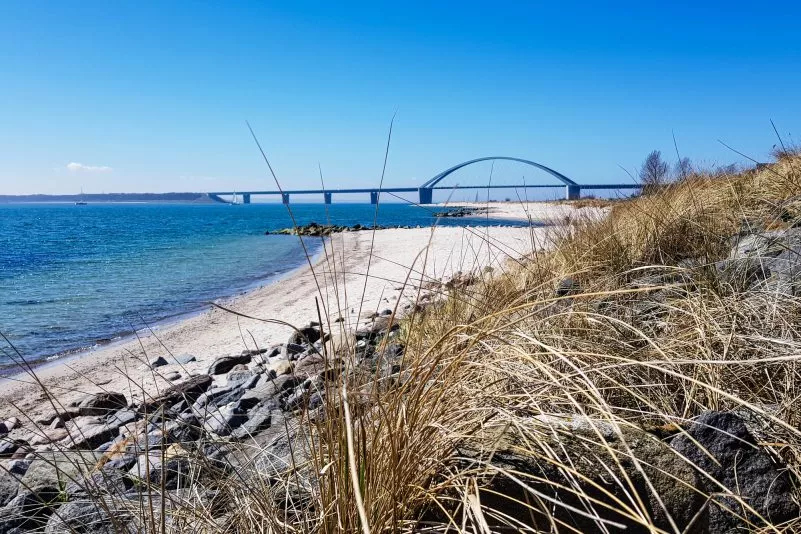 Die geplante Fehmarnbeltquerung ist eine Verkehrsverbindung unter dem Fehmarnbelt hindurch zwischen Dänemark und Deutschland. Im Bild die ältere Fehmarnbeltbrücke.