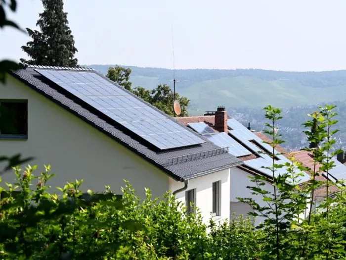 Photovoltaikanlagen sind auf Dächern von Wohnhäusern angebracht. Sie haben oftmals weniger als 10 kWp.